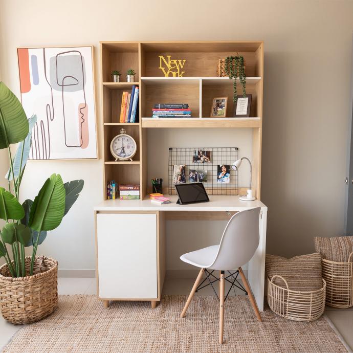Organiza tus libros y accesorios con estantes versátiles que combinan diseño moderno y practicidad para un regreso a clases más ordenado y eficiente.